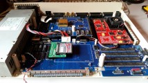 Obudowa od A1000 od Faziora (za darmo! - wielkie dzięki), pierwsze przymiarki płyty GBA1000. Sama obudowa trochę poprzerabiana (Fazior zaznaczył, że to "dzieło" jeszcze wcześniejszego właściciela), trzeba dorobić trzy słupki, załatać dziurę z boku... ale sama obudowa prezentuje się super, płyta do niej pasuje idealnie (świetny projekt Georga Brauna). Na zdjęciu widać GBA1000 z kartą procesorową 68060 i kartą graficzną Picasso II++ , kontroler USB Thylacine ukryty pod frontową klapką. Brak zasilacza, szukam albo oryginalnego PSU A1000, albo pasującego wymiarami zasilacza od PC. |